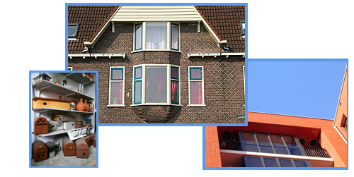 Kent u het… de aankondiging van de zomer door de gierzwaluwen? Of het gekwetter van de mussen? Wist u dat een huiszwaluwgezin enkel duizenden insecten per dag verorbert, of dat kauwen de grasvelden schoon houden? Kortom, vogels in de leefomgeving geven meer woonplezier in en om de woning. Daarom kunnen wij een diversiteit aan vogelnestkasten leveren of maken. Maar bij voorkeur integreren we dat in de woningconstructie. Zo kunt u de gewenste soort een natuurlijk onderkomen geven zonder dat er aan de gevel een nestkast geplaatst hoeft te worden.